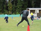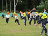 何人かのビブスを持っている子を追いかけ、タッチしたらビブスを渡します。 ビブスを手に出来るように頑張れ~!