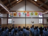 今日は10・11月生まれのお友だちのお誕生会☆ ホールに集まってお祝いです。