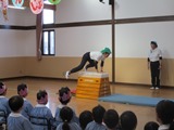 懐かしのバックミュージックに合わせてとび箱を片付けると、整列して「ありがとうございました」