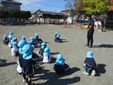 1月のマラソン大会に向けて3分間走。スタートダッシュがすごかった年長さんでしたが、3分は長い...。