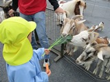 ♪ 動物にエサをあげたり抱っこ出来るコーナーでは、食欲旺盛のヤギやひつじ、ブタに圧倒されながらもエサをあげたり、うさぎやモルモットにエサをあげたり抱っこしたりと楽しんでいました。