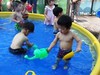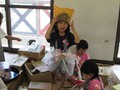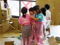 昨日の続きで、小物の廃材を使って、ごっこ遊びや、道具を作ったり、新らしゲームを考えたり、思い思いに遊びを展開。後半には小麦粉糊を使って紙貼りしつつ、やはり糊遊びが盛り上がりました。