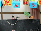 今月のお楽しみは、先生たちによる人形劇ー太ったねずみと細いねずみが相撲をとって勝負する昔ばなし。