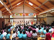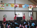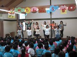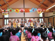 昨日は、8月生まれの誕生会。園で一足早くお祝いしました。人数が多いので、雛壇に2列で並んだ8月生まれの園児たち。どの子もとっても嬉しそう。ママ達からのプレゼントは、ママ達も子供のころからよく知っている歌で、ある場面の再現も上手に決まって盛り上がりました。普段とはちょっと違った服装で現れた先生たちに興味深々の子ども達。始まったのは、年中から習っている鍵盤ハーモニカのミニ演奏会。難しい曲でもこんなに素敵に弾けるなんて、鍵盤ハーモニカの魅力に触れた演奏会でした。