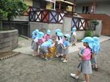 バスを降りて、お友だちと手を繋いだら「いっちに♪いっちに♪」