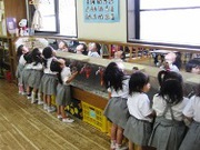 そして、朝礼・礼拝。 ピアノの音でスッ!っと立ち、フラフラすることなく、歌もしっかり歌え、さすが年長!という姿でした。