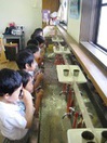 保育室の壁一面の流しに並んだ水道の使い方も教わりました。