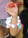 昨日の続きで、小物の廃材を使って、ごっこ遊びや、道具を作ったり、新らしゲームを考えたり、思い思いに遊びを展開。後半には小麦粉糊を使って紙貼りしつつ、やはり糊遊びが盛り上がりました。