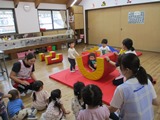 ほし組さんとめだか組いちご組さんは、大きなフワフワつみきやマットで遊んでいました。