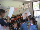 一人一人に先生がインタビュー、先生の真似をして、上手に英語でも答えられました。