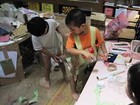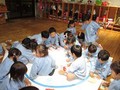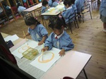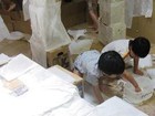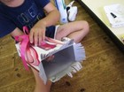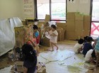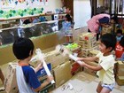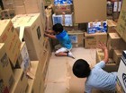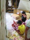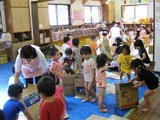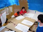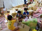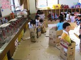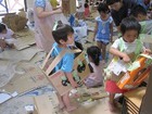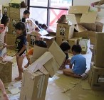 年長の子供達は、手馴れた手つきで、ダンボールを箱にしていきます。