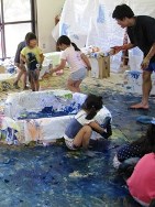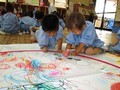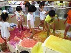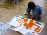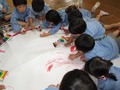 年中のあるクラス、絵の具で存分に遊びました。