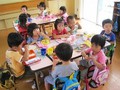 クラスで、楽しく英語体験をする一方、一緒にお部屋でお昼を食べたり、お庭で一緒に遊んだりもします。