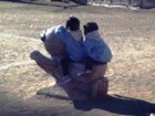 そして子ども達がおもちつきをする前にお手伝いのお父さん達が練習。