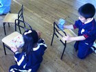 音楽朝礼後、制作をした一緒に年長さん。