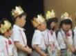 頭の冠は、先生たちの手作りです。毎年、デザインが変わります。
