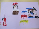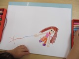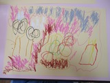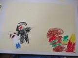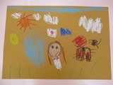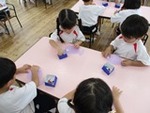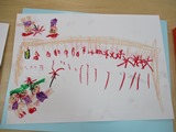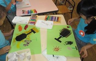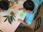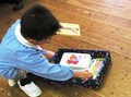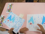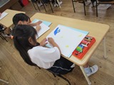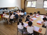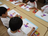 絵の具は自分のお道具箱に入っているけど、みんなと一緒の時にだけ使えるちょっぴり特別なもの! 年中の時にも使いましたが、再度使い方の確認でぬりえのようにぬって仕上げました。