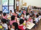 今日はめだか組さんとキディさんが一緒にお昼ご飯を食べました。