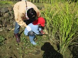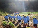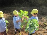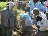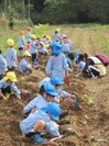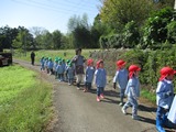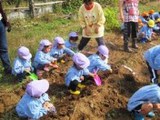 年長児と年中児は、秋が深まる里山の畑にさつまいも掘り行ってきました。シャベルや手を使って土を掘ると紅色のおいもが出てきて、子ども達は大喜びでした。細長い一本を慎重に手を使って掘りだしたり、次から次に掘りだしてあっという間にいもの山ができている子もいました。複数のいもが連なった形で引き抜くように掘りだして周りの子ども達からも「大きい☆」との声が上がる子もいました。おみやげに持ち帰ったおいもは、どんな料理に変身したのか、明日報告をきくのが楽しみです。