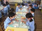 年長にもなると、手つきもスムーズ、自分達も輪になって、黙々と手を動かしていました。