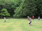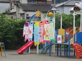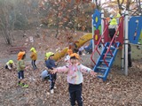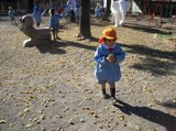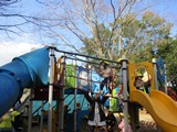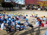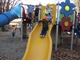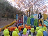 お兄さんお姉さん達がさつまいも掘りに出かけた間、年少組は、近くの公園に歩いて遊びに行きました。体育の先生と一緒に公園の広場で楽しく体操したり、公園の遊具で色々と遊んでみんなニコニコのお出かけになりました。
