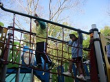 その後は園庭の遊具の遊び方の確認。明日から来る小さいお友だちにも教えてあげてね!