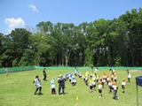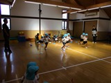 体力作りのため行っていますが、経験者の年長さんや年中さんは慣れた感じ、初めての年少さんは、少しずつ参加していました。見よう見まねでかわいかったです。