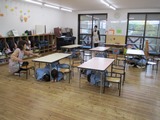 まずは、年長組。おしゃべりをしないで、さっとイスを持ち上げ、運んでいく様子は、さすが幼稚園での最上級生です。