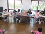 音楽朝礼後、制作をした一緒に年長さん。