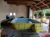 そして子ども達がおもちつきをする前にお手伝いのお父さん達が練習。