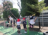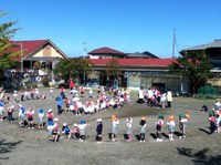 外で体操! 気持ちいいね☆ |