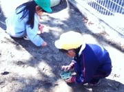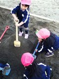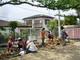 園庭でも、プランターを使って苗を植えました。お庭でも稲の成長を見守っていきます。