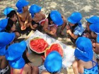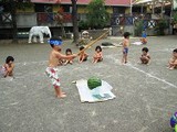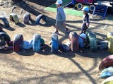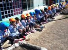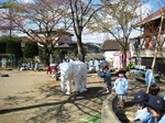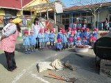 さあ、子ども達の準備も出来ました。今日は手拭いで頭にねじり鉢巻きをして...やる気マンマン!