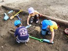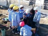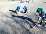 めだか組のお友達が砂場にいってみると、砂場に大きな穴ができてました。