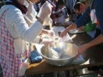 まずは蒸かしている様子を観察。近くで見せてもらい「うわぁ~」