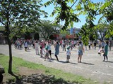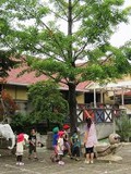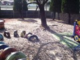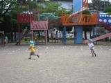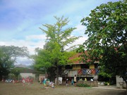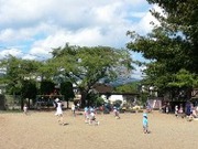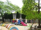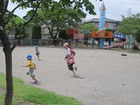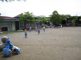 かぴら幼稚園では、砂場などの日よけに、自然の木陰を使い、正常な視覚を養うようにしています。
