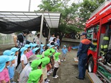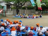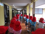 月に一度の避難訓練でした。 今回は不審者対策の練習。