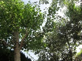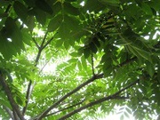 かぴら幼稚園のお砂場は、木陰の下にあります。今は、若葉のみどりがみずみずしく光ってます。