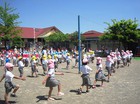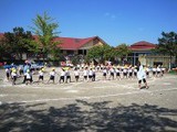 まずはラジオ体操をして準備運動。