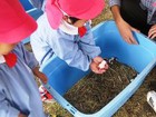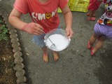 園庭で、色水遊びをしました。