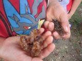 手の中にあるお金は、ぼだいじゅの実です。