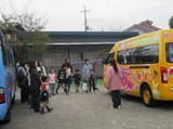 それでは、園庭門からコースの下見に行ってきます!誘導にバスの運転手も随行します。