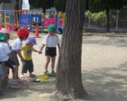 園庭のいちょうの木の周りで、年少さんと先生がかくれんぼ?をしています。