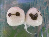 今度は手に粉をつけて鏡もち作り。 大小2つのおもちを丸めて雪だるまのように重ねて出来上がり☆