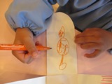 指先を器用に使ってシールを貼ったり、好きな色、好きな模様を描いて