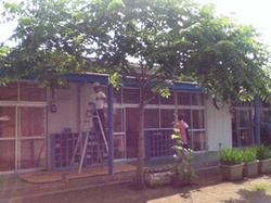 夏休みを利用して、園では、掃除に草刈り、カーテンなどの洗濯、修繕などなど2学期を気持ちよく迎えられるように、職員が様々な作業を行います。