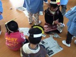 新聞紙で豆まきの豆(ちょっとサイズは大きいけれど。。。。)をつくって、まめまきごっこもしました。
