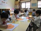 友達が、体育の先生と「だるまさん転んだ!」を楽しんでいる傍ら、黙々と作業に没頭する姿がありました