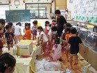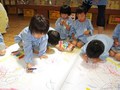 今日は、小麦粉のりが登場。紙貼りのはずが、いつのまにか、糊パックの時間になっていたり、スケート大会に。存分にヌルヌルベタベタの感触を楽しみました。