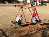 月曜日と木曜日に子どもだけて通う未就園児教室「キディ」は、今日が今学期最後の日。ぽかぽか天気に恵まれて、2歳児クラスのめだかの子ども達と一緒に元気いっぱい園庭で遊びました。園庭に面したテラスに座ると、みんな自分で靴を履きかえて、園庭で遊ぶ気満々です。大好きなお砂場目指して一直線に駆け出していく子も。園庭には、2,3児用のミニブランコや滑り台などの遊具があり、キディやめだかの子ども達も楽しく遊ぶことができます。ミニブランコは、上手に漕いでのれるようになり、楽しいおしゃべりも聞こえてきました。毎日ではなくても、5月から一学期、二学期と同じ仲間と過ごすことで、園生活にもなれ、またお互いに存在にも親しんで、活動の幅がどんどん広がっています。3学期も元気に遊ぼうね。
